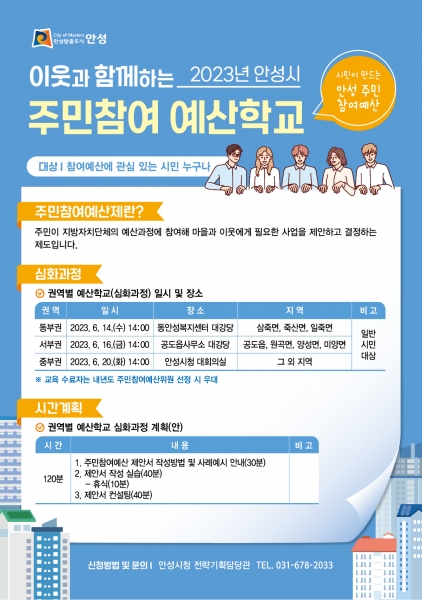 2023년 안성시 주민참여 예산학교로 초대한다.