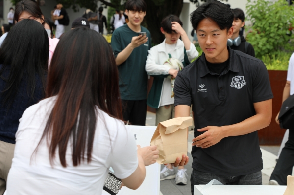 수원FC 선수들, 아주대학교 ‘사랑의 밥차’ 참여… 대학생들 호응