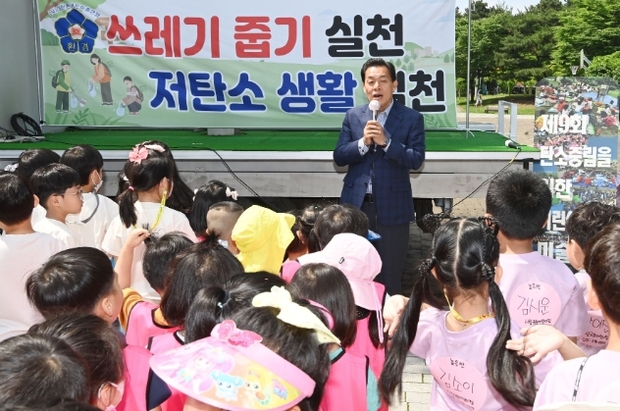 이재준 수원특례시장이 9일 인계동 효원공원에서 열린 ‘제9회 자연환경보호 어린이그림그리기대회’에 참석해 “우리가 사는 수원을 더 아름답게 가꾸는 데 어린이들이 함께해 달라”고 말했다.