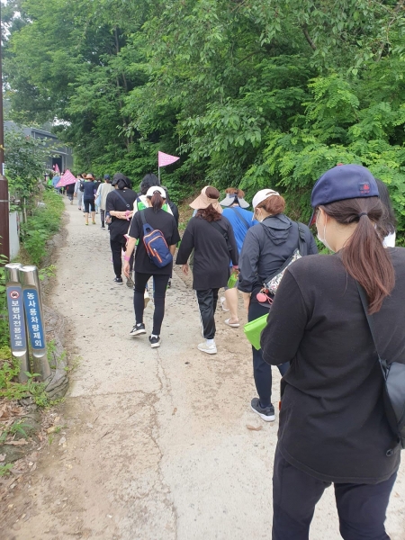 스탬프투어는 지난 2일 논곡마을 걷길을 시작으로 9일에는 양달천 걷길을 분홍색 깃발을 든 시민 50명과 함께 걸었다.