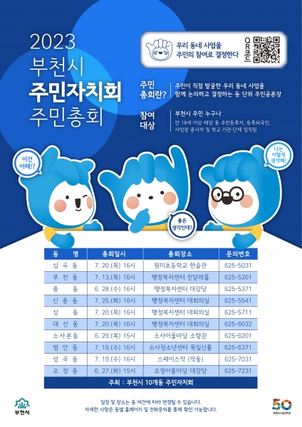 [금요저널] 부천시는 오는 6월 27일부터 7월 25일까지 10개 전 동 주민자치회에서 내년도 자치계획 결정을 위한 주민총회를 순차 개최한다고 밝혔다.