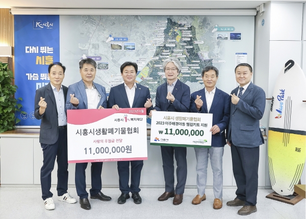 [금요저널] 시흥시생활폐기물협회가 지난 14일 시흥시장실을 방문해 초록우산 어린이재단과 시흥시1%복지재단에 후원하는 기부금 2,200만원을 전달했다.