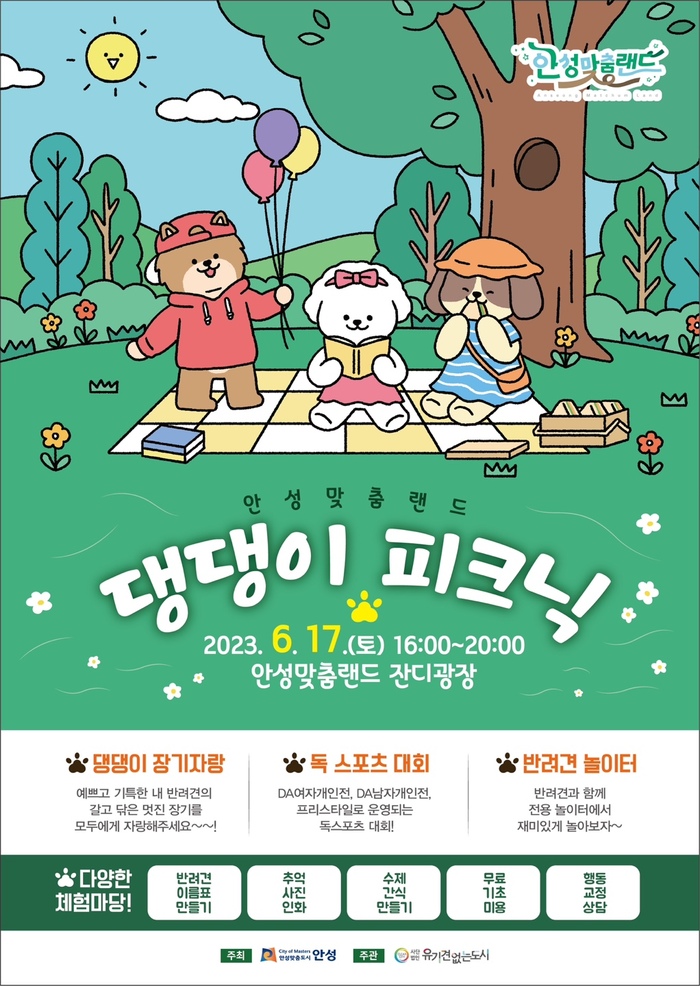 안성시는 오는 17일 안성맞춤랜드 잔디광장에서 ‘댕댕이 피크닉」을 개최한다고 밝혔다.