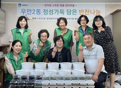 한편 우만2동 새마을부녀회는 반찬 나눔 봉사를 비롯해 매년 삼계탕 봉사나 김장 나눔 행사 등 소외된 이웃들을 위한 다양한 봉사활동을 꾸준히 추진해 오고 있다.