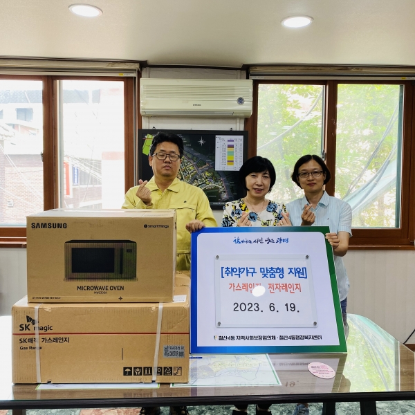 [금요저널] 광명시 철산4동 지역사회보장협의체는 지난 19일 취약 가구 2가구에 가스레인지와 전자레인지를 지원했다.