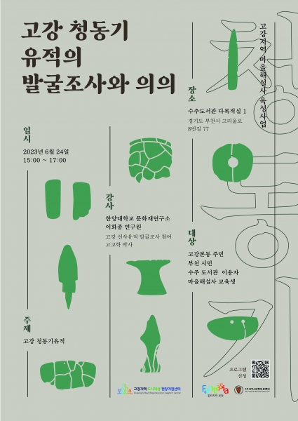 [금요저널] 부천시는 오는 6월 24일 오후 3시 수주도서관 다목적실1에서 ‘2023년 고강지역 선사문화 이야기 발굴단 육성’에 대한 특강을 개최한다.