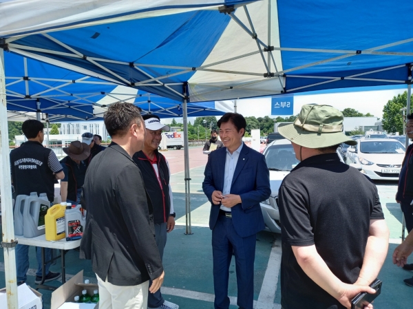 조용익 부천시장은 이날 부천종합운동장 부설주차장에서 진행한 ‘휴가철 자동차 무상 안전점검 행사’ 현장을 방문해 행사에 참여한 정비업 대표자들을 격려하고 무상점검을 위해 방문한 시민들과 이야기를 나누며 시정에 관한 다양한 의견을 경청했다.