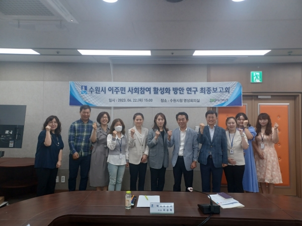 [금요저널] 수원시가 22일 수원시 영상회의실에서 ‘수원시 이주민 사회참여 활성화 방안 연구’ 최종보고회를 열고 이주민·시설종사자 대상 심층 면접조사 결과를 공유했다.