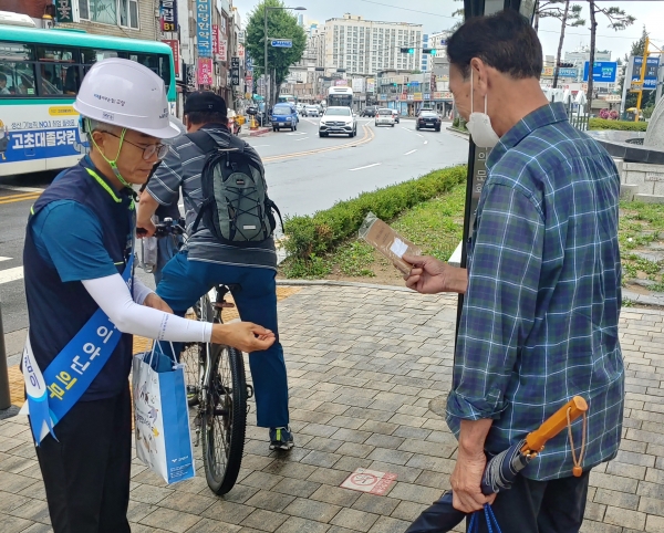 노동안전지킴이 및 사업 담당자들은 3개 조로 나눠 아파트 건설현장 종사자 및 일반시민을 대상으로 개인보호구 착용 주요 재해 예방 조치 등을 안내하고 산업재해 예방 홍보물을 전달하며 안전사고 예방의 중요성을 알렸다.