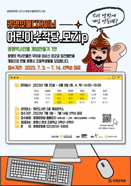 광명문화원,‘무의공 이순신 게임만들기 프로젝트’ 초등학생 참가자 모집