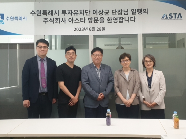 이상균 기업유치단장은 “2006년부터 지금까지 수원 기업으로 자리 잡고 세계적인 기술 수준에 도달한 ㈜아스타에 감사드린다”며 “㈜아스타가 더 성장하는 데 필요한 것을 말씀해 주시면 다각도로 지원을 검토하겠다”고 말했다.