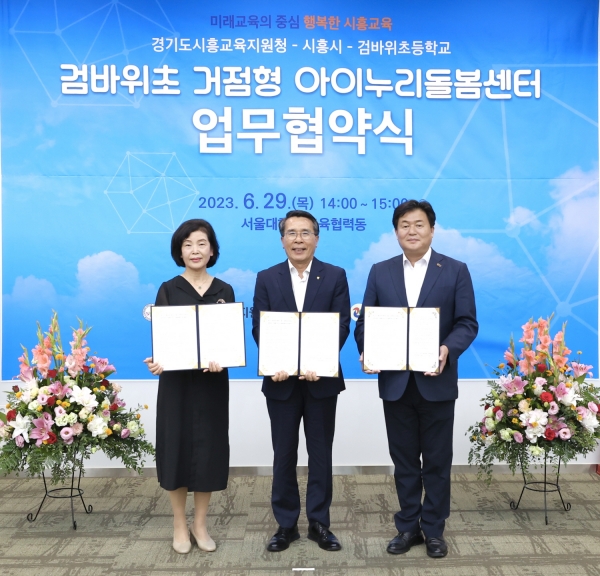 이에 시흥형 돌봄 모델을 발굴하고자 29일 서울대학교 시흥캠퍼스 교육협력동에서 ‘검바위초 거점형 아이누리 돌봄센터 업무 협약’을 체결했다.