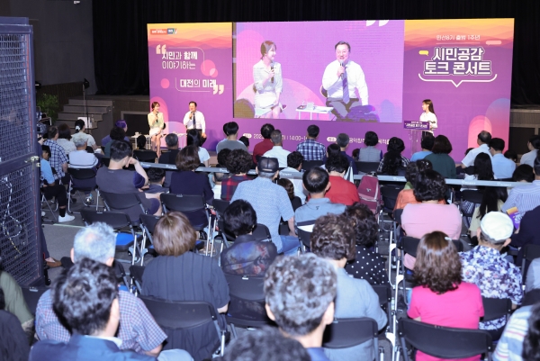 [금요저널] 대전시는 29일 오후 2시 대흥동 대전음악창작소에서 민선 8기 출범 1주년을 맞아 시민공감 토크 콘서트를 개최하고 수도권을 뛰어넘는 일류 경제도시 구상을 시민들과 공유했다.