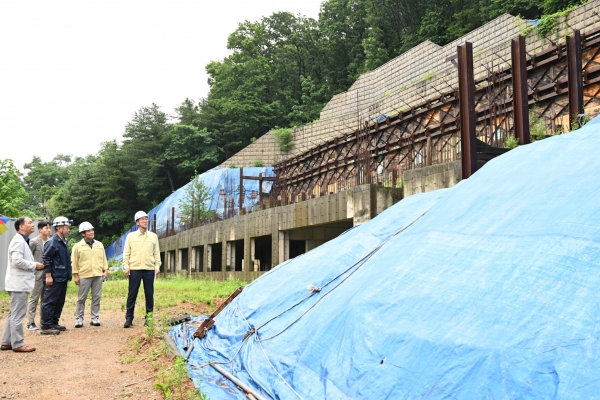 관련 부서장 및 시 소속 전문가들과 함께 현장을 점검한 이 시장은 공사중단 현장 주변의 배수 상태를 중점적으로 확인했다.