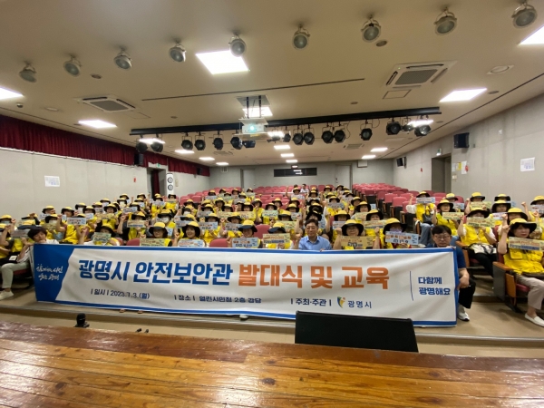 [금요저널] 광명시는 3일 열린시민청 민방위교육장에서 재개발·재건축 공사장 주변의 안전을 책임지는 ‘2023년 하반기 안전보안관’ 발대식을 개최했다.