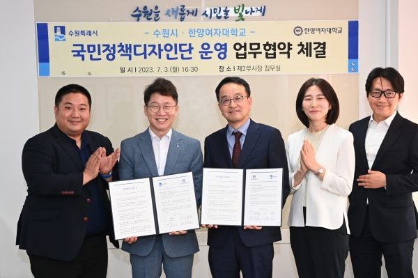 [금요저널] 수원시는 3일 시청에서 한양여대와 ‘가족돌봄청년 중증질환, 장애, 정신질환 등으로 돌봄이 필요한 가족을 돌보고 있거나, 그로 인해 생계를 책임지고 있는 13세~34세 맞춤형 주거정책 개발을 위한 국민정책디자인단 운영’ 업무 협약을 체결하고 협력을 약속했다.
