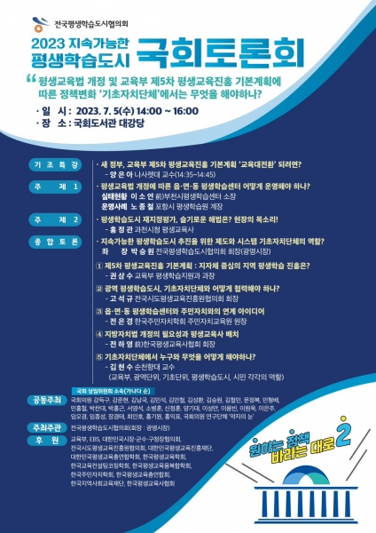 이번 국회토론회는 정부가 지난해 12월 발표한 ‘제5차 평생교육진흥 기본계획’과 평생교육 체계 정비·지원 강화를 골자로 올해 4월 18일 개정된 평생교육법에 따라 평생교육 정책환경 변화가 예상되는 가운데, 지방자치단체 역할과 지속가능한 정책 추진 방향을 모색하기 위해 마련됐다.