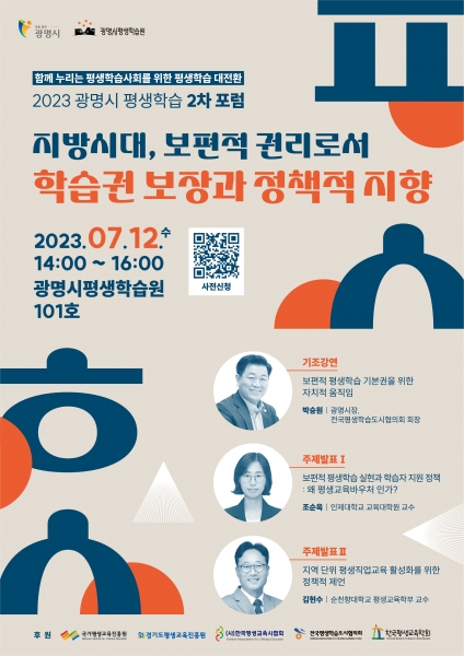 [금요저널] 광명시는 오는 12일 오후 광명평생학습원 101호 강당에서 ‘2023 광명시 평생학습 2차 포럼’을 개최한다.