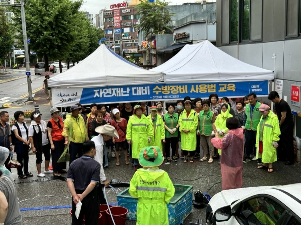 이날 하안3동 자율방재단 주관으로 긴급대응단 담당 구역 및 역할을 안내하고 수중펌프 사용법을 교육했다.