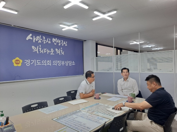 [금요저널] 경기도의회 문화체육관광위원회 이영봉 위원장은 지난 4일 도의회 의정부상담소에서 상우고등학교 홍준식 운영위원장을 만나 호원동 소재 상우고등학교 교육환경 개선을 위한 승강기 설치 사업계획안에 대해 논의하는 시간을 가졌다.