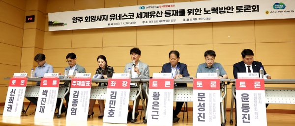 [금요저널] 경기도의회 김민호 교육행정위원회 위원이 좌장을 맡은‘양주 회암사지 유네스코 세계유산 등재를 위한 노력방안 토론회’가 7월 4일 오후 2시 양주 회암사지박물관 강당에서 개최됐다.