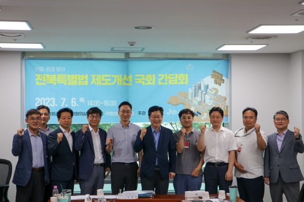 이날 간담회에는 안호영 의원과 임상규 전북행정부지사, 민선식 전라북도 특별자치도추진단장, 산업통상자원부와 환경부 관계자 등이 참석해 특별법상 산업·환경 분야 제도개선사항에 대해 논의했다.