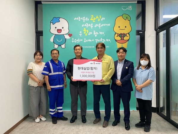 현대실업은 과림동 및 은행동 청소대행업체로 공동주택, 도로변 등에 배출된 생활폐기물을 수집 및 운반해 깨끗한 도시 정비를 위해 노력하는 한편 꾸준히 선행을 이어왔다.