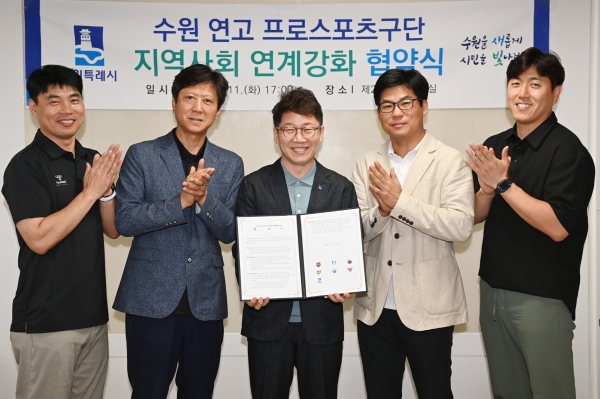 황인국 제2부시장은 “오늘 협약은 프로스포츠 구단과 수원시가 함께 스포츠 복지를 실현하며 따뜻한 돌봄특례시를 만들어 가는 첫걸음이 될 것”이라며 “실무협의체가 프로스포츠 구단과 연계된 다양한 사회공헌사업을 추진하길 바란다”고 말했다.