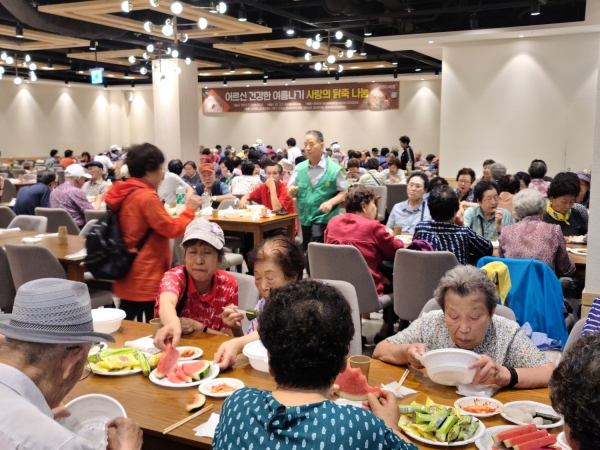 [금요저널] 서울 서초구 양재2동은 초복을 맞아 어르신들의 건강한 여름나기를 돕기 위해 지난 11일 양재 aT센터에서 ‘사랑의 닭죽 나눔’ 행사를 열었다.