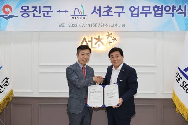 [금요저널] 인천 옹진군은 서울 서초구와 지난 11일 서초구청 5층 구청장실에서 업무협약을 체결했다고 밝혔다.