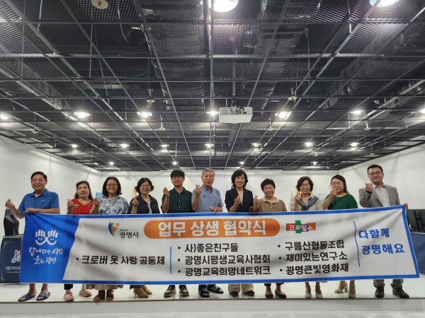 크로버옷사랑공동체는 공모사업 추진을 위해 지난 12일 지역사회 단체인 좋은친구들 구름산협동조합 광명시평생교육사협회 재미있는연구소 광명교육희망네트워크 광명큰빛영화제와 업무 상생 협약을 체결했다.