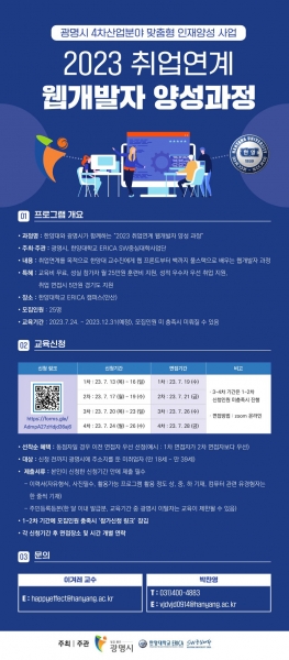 시는 오는 7월 24일부터 연말까지 ‘2023년 광명시 4차산업 분야 맞춤형 인재 양성사업’을 추진한다고 14일 밝혔다.