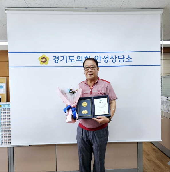이번 표창장은 경기도의회 보건복지위원회 소속 황세주 의원이 김 도지사를 대신해 이호용 주민에게 직접 전달하는 방식으로 지난 10일 경기도의회 안성상담소에서 진행됐다.
