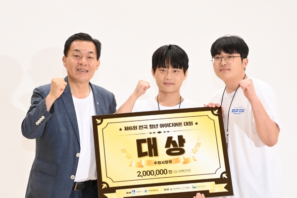 [금요저널] 수원시와 아주대가 주최하고 아주대LINC 3.0 사업단과 희망둥지협동조합이 주관한 ‘제6회 청년 아이디어톤 대회’에서 ‘전동킥보드 폐배터리를 재사용한 태양광 휴대폰 무선 충전 거치대’ 아이디어를 제안한 ‘배리굿’팀이 대상으로 선정됐다.