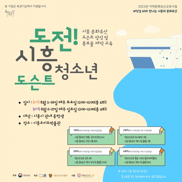 청소년들이 박물관의 전시 해설을 통해 시흥의 문화유산을 살펴보고 홍보물 제작을 체험할 수 있게 하고자 마련됐다.