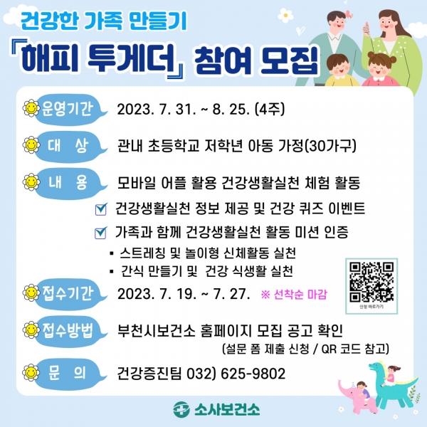 건강한 가족 만들기 ‘해피 투게더’ 운영 관련 세부 사항은 부천시보건소 홈페이지에서 확인할 수 있다.