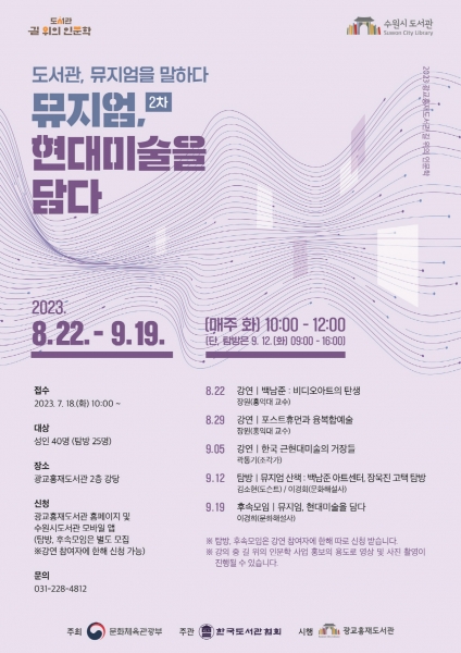 수원시 광교홍재도서관, ‘도서관, 뮤지엄을 말하다 : 2차 뮤지엄, 현대미술을 담다’ 수강생 모집