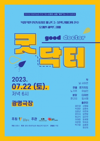 [금요저널] 광명시 평생학습원에서 진행한‘신중년, 삶을 ‘배우’다’에 참여한 신중년 학습자들이 오는 22일 토요일 오후 6시 광명극장에서 연극 ‘굿닥터’ 발표회를 가진다.