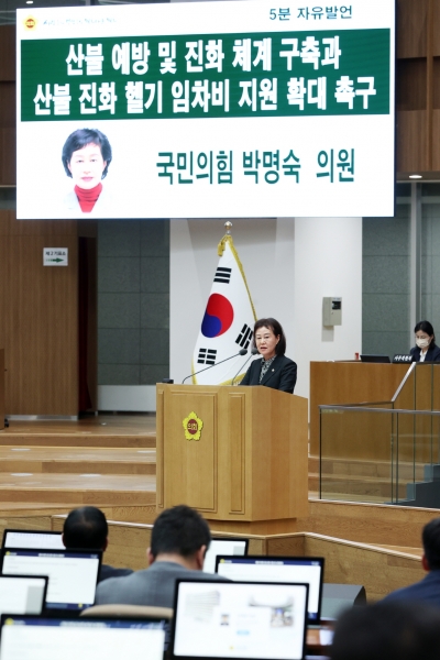 경기도의회 박명숙 의원, 5분자유발언에서 산불 대응 상설 전담기구 설립 및 산불 진화 헬기 임차 지원 예산 확대 촉구