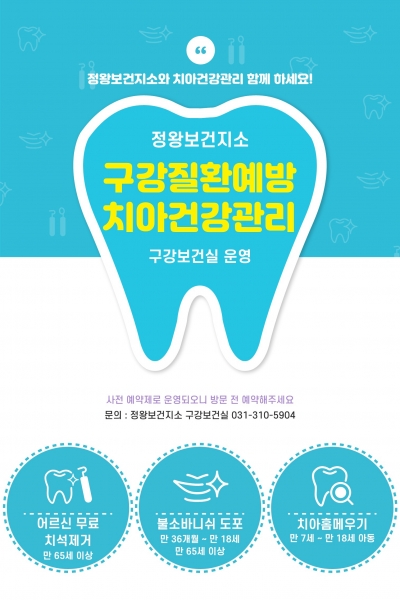 이 밖에도 정왕보건지소 구강보건실에서는 만 36개월~만 18세, 만 65세 이상의 시민을 대상으로 불소바니쉬 도포 서비스도 시행하고 있다.
