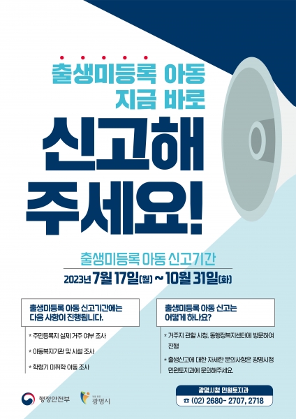 이에 따라 시는 조사 기간 중 출생 미등록 아동 신고 기간을 10월 31일까지 운영한다.