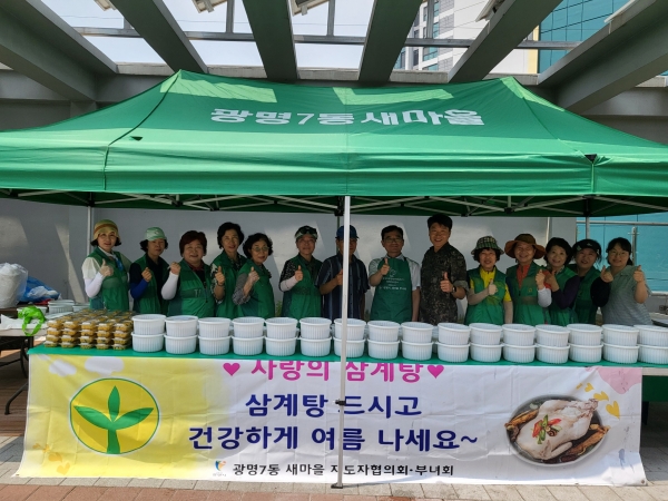 광명7동 새마을부녀회 회원 20여명은 영양 가득한 삼계탕 80인분을 정성껏 조리해 홀몸 어르신 가구에 전달하고 더위 속 어르신들의 건강과 안부를 확인했다.