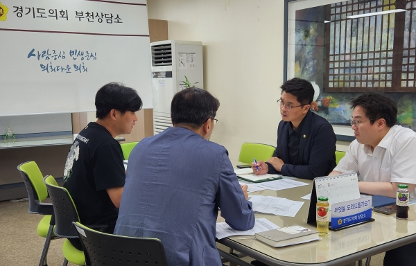 [금요저널] 경기도의회 이재영 의원은 지난 21일 부천상담소에서 설훈 국회의원실 김대주 선임비서관, 부천시 체육진흥과 체육시설 1팀장과 관계자가 해그늘 게이트볼장 개선공사를 보완하는 정담회 자리를 가졌다.
