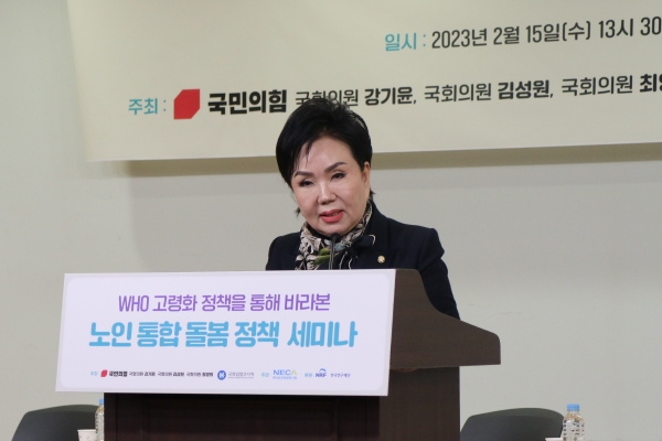 최영희 의원은“노인돌봄의 통합지원에 필요한 사항을 법률로 정해 행복지수가 높은 노후를 보낼 수 있도록 관련 제도를 점검하고 마련할 필요가 있었다”며 “빠른 시간내에 입법이 완료되어 통합지원이 필요한 노인의 욕구와 필요도에 따라 수요자 중심으로 의료·요양·돌봄 등의 서비스가 지원될 수 있도록 노력하겠다”고 말했다.