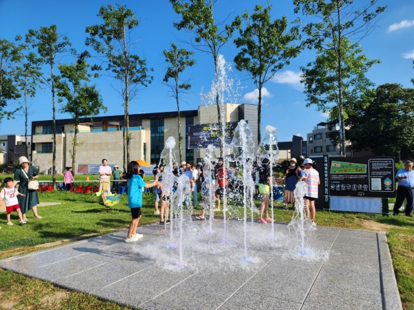 무더위를 날려 줄 시원한 바닥분수가 개장되면서 아름다운 조명이 어우러지는 아트타일 마을 정원과 함께 새로운 볼거리를 제공하고 있다.