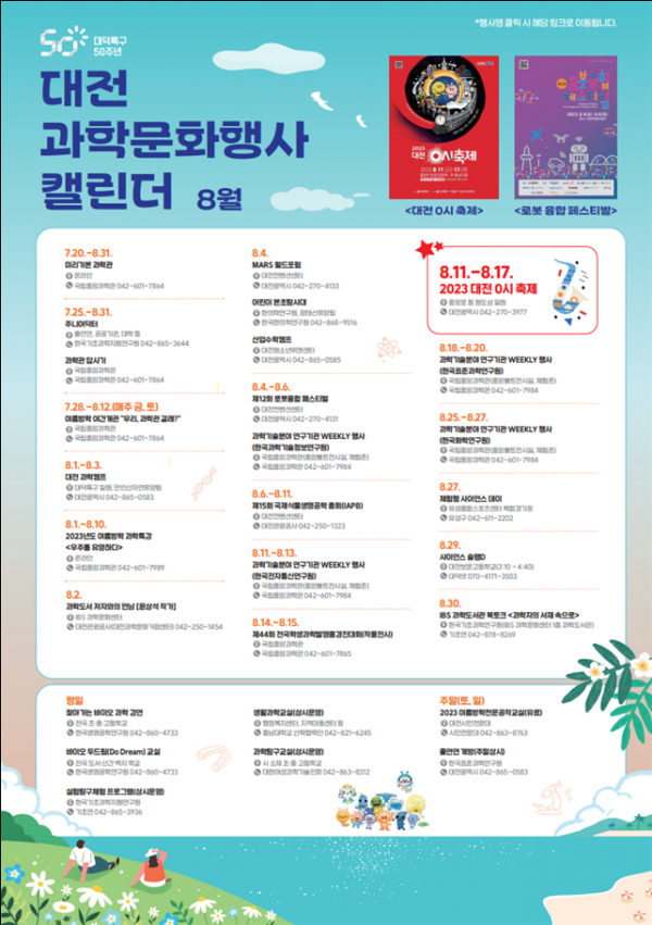 [금요저널] 대한민국 대표 과학도시 대전에서 8월 대중의 관심을 사로잡을 다채로운 과학문화행사가 열린다.