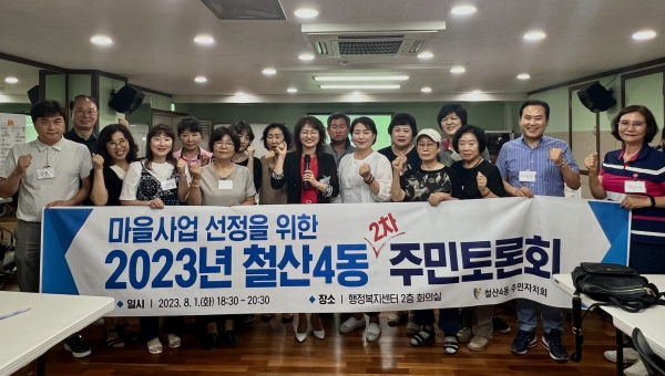 최미현 철산4동장은 “주민들께서 마을사업에 관심이 높아 토론회에 적극적으로 참여해 좋은 의견들을 내주셨다”며 “앞으로도 주민들이 직접 마을을 변화시키고 꾸려나갈 수 있도록 지원을 아끼지 않겠다”고 말했다.