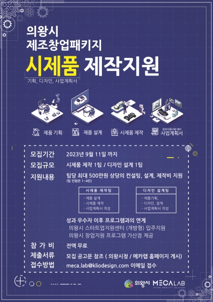 의왕시, 2023년 제조창업패키지 시제품 제작 지원사업 시행