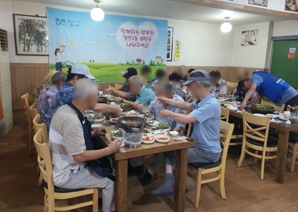 [금요저널] 광명시 철산2동 지역사회보장협의체는 말복을 맞아 지난 9일 건강밥상 나눔 사업을 진행해 어르신 20명에게 오리백숙을 대접했다.