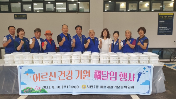 강원식 하안2동장은 “여름철 더위에 취약한 어르신들의 건강을 위해 행사를 마련해주신 바르게살기운동위원회 위원들께 감사드린다”며 “어느 해보다 덥고 힘든 여름을 보내고 계시는 이웃들에게 시원한 그늘막이 될 수 있도록 노력하겠다”고 전했다.